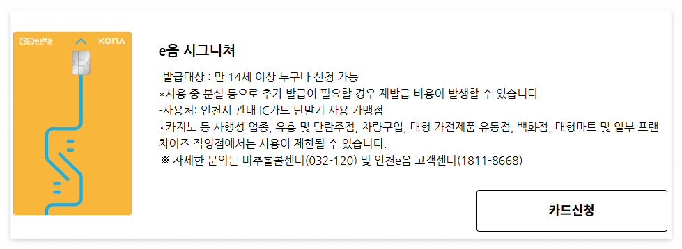 • 주소지 구별 카드 확인 : 미추홀·부평·서구 등은 자체 e음카드, 나머지는 인천e음 카드